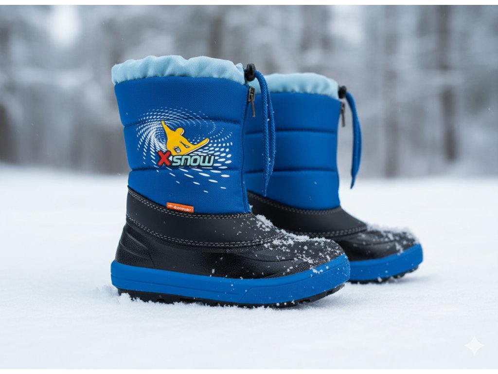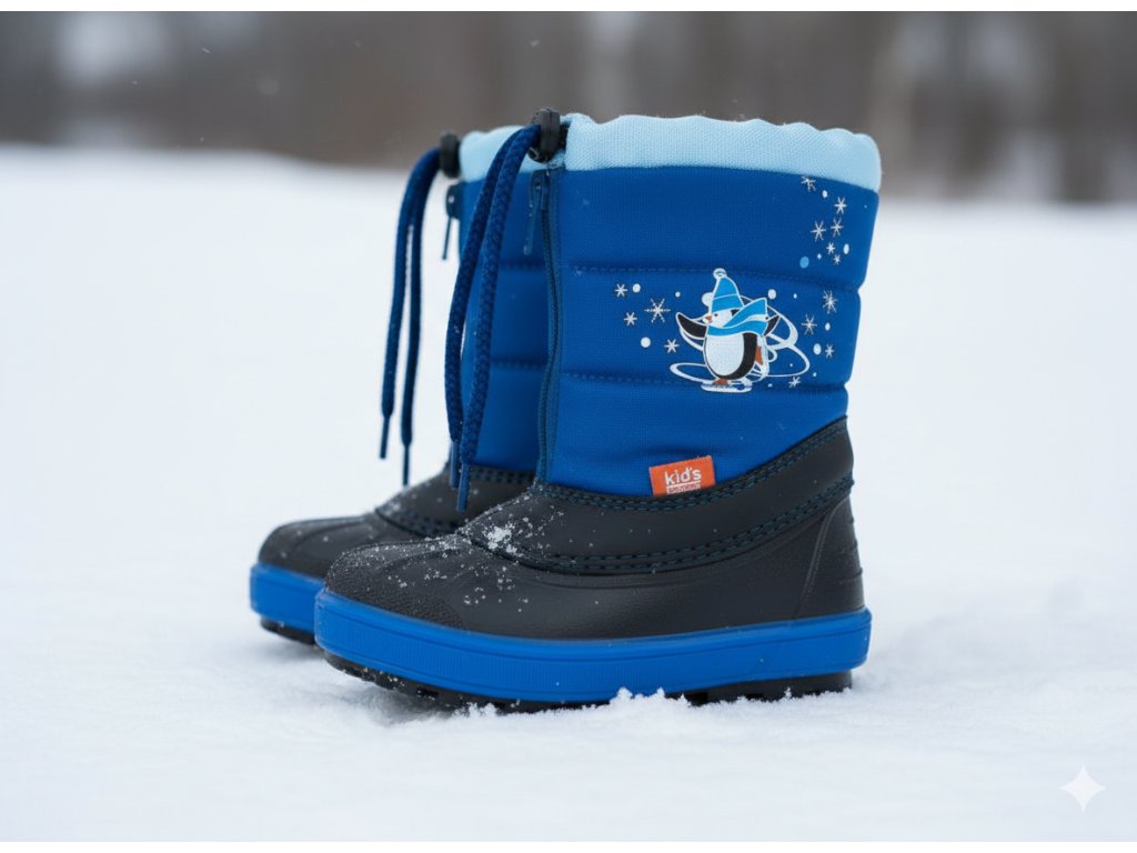 Detské zimné sťahovacie snehule Demar KENNY 2 sú ideálnou voľbou do chladného počasia. Farba obuvi je modrá. Vrchná časť snehulí je vyrobená z odolnej a ľahko umývateľnej textílie a spodná nepremokavá časť z mrazuvzdorného termokaučuku. Topánky sú zateplené kožúškom z ovčej vlny, vďaka ktorému sú veľmi pohodlné a teplé. Pre pohodlné obúvanie a jednoduché zapínanie sú snehule vybavené zipsom. Na hornej časti obuvi je umiestnený sťahovák na šnúrku a reflexný prvok. Topánky majú hrubšiu vzorku podrážky, ktorá prispieva k bezpečnosti chôdze.