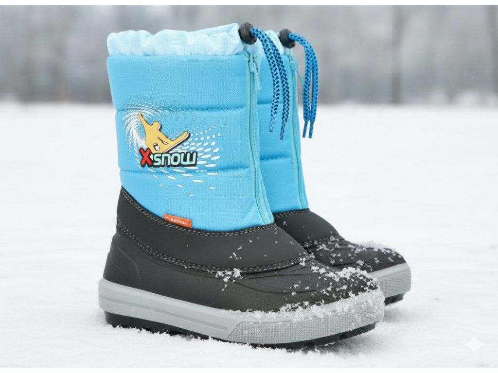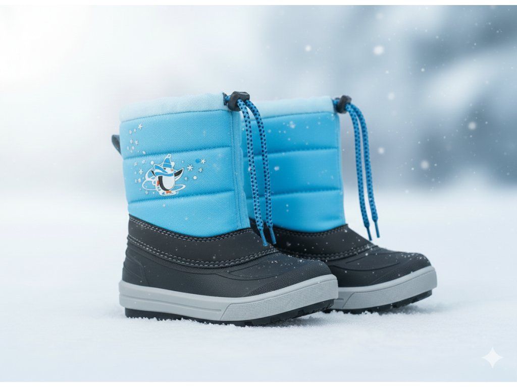 Detské zimné sťahovacie snehule Demar KENNY sú ideálnou voľbou do chladného počasia. Farba obuvi je svetlo modrá. Vrchná časť snehulí je vyrobená z odolnej a ľahko umývateľnej textílie a spodná nepremokavá časť z mrazuvzdorného termokaučuku. Topánky sú zateplené kožúškom z ovčej vlny, vďaka ktorému sú veľmi pohodlné a teplé. Pre pohodlné obúvanie a jednoduché zapínanie sú snehule vybavené zipsom. Na hornej časti obuvi je umiestnený sťahovák na šnúrku a reflexný prvok. Topánky majú hrubšiu vzorku podrážky, ktorá prispieva k bezpečnosti chôdze.